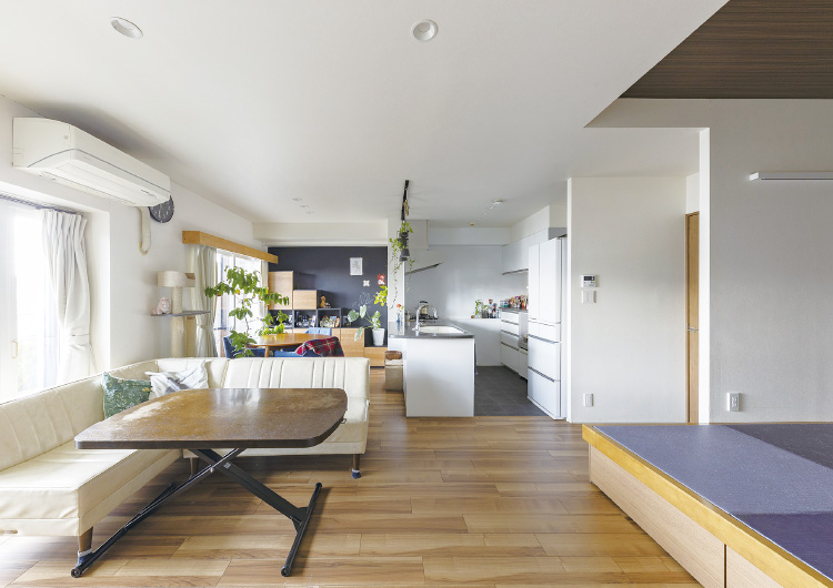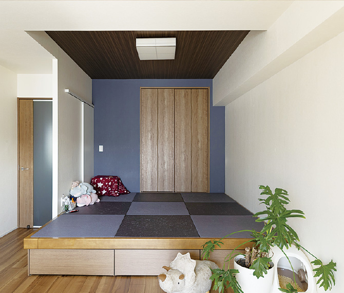 和室のあった場所は小上がりの畳コーナーに変更。下部は収納にし、キャットフードや日常使いの品々などを収納