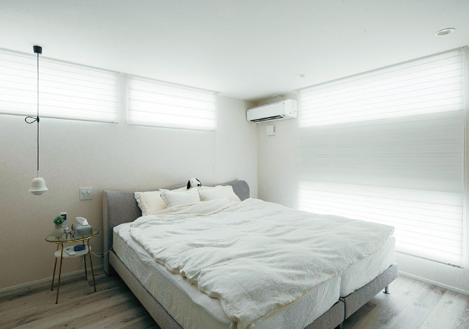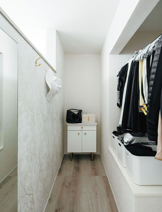 主寝室の仕切り壁の裏側には、扉のない使いやすいクローゼット。