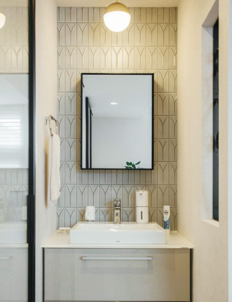 各階に洗面台を設けることで忙しい朝も混み合わず安心。デザイン性重視でミラタップ製を採用