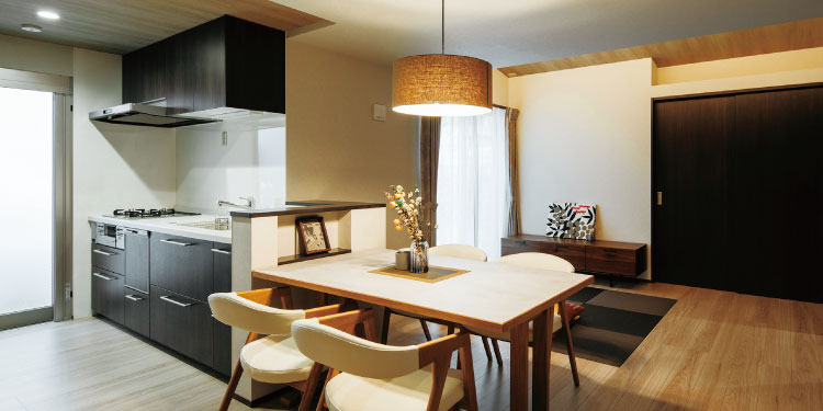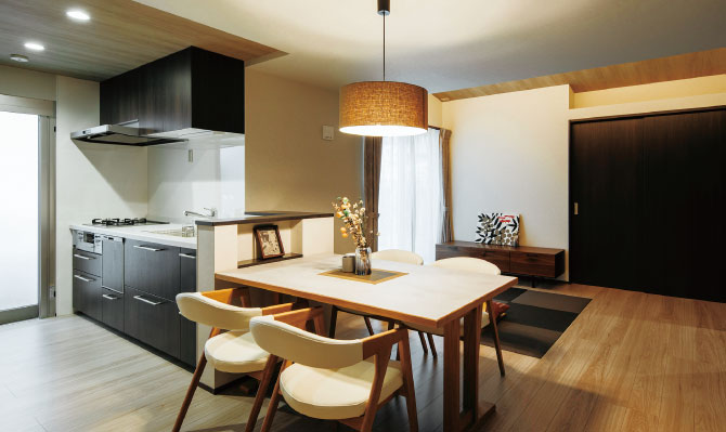 配膳しやすいよう、ダイニングテーブルをキッチンの横に配置した