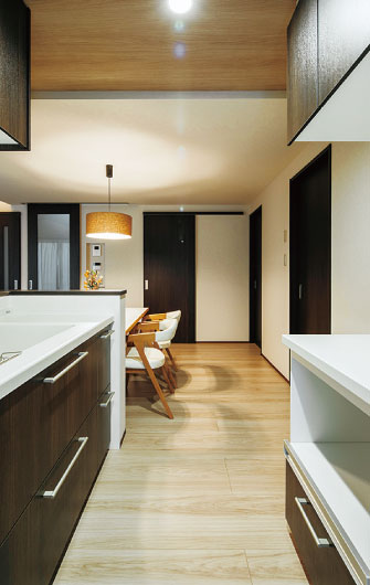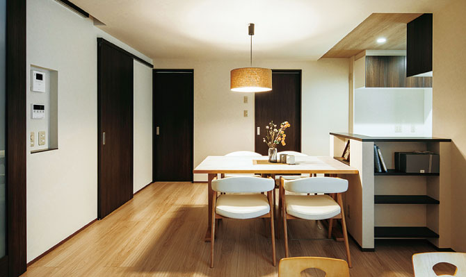 ベージュのクロスとブラウンの室内ドアで、落ち着いた雰囲気を演出。