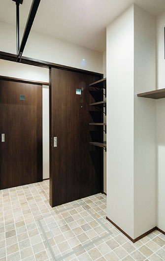 扉を開けると洗面室やトイレにつながっている
