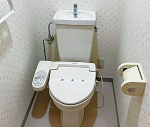トイレの間取りは既存のままだが、設備を新しくしてクロスで華やかに。空間を広く使うため固定棚は撤去した。壁付けのペーパーホルダーはK様が購入したもの。