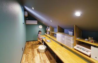 そのためには階段を造って窓を変える必要がある。「せっかく階段を造るなら、ロフトや物置きを設けて陸屋根の上をルーフバルコニーにできればいいね」というアイデアが浮かんだ。コロナ禍で外出できないお子さんたちが、安心して遊べる場所を与えたいという親心も背中を押した。