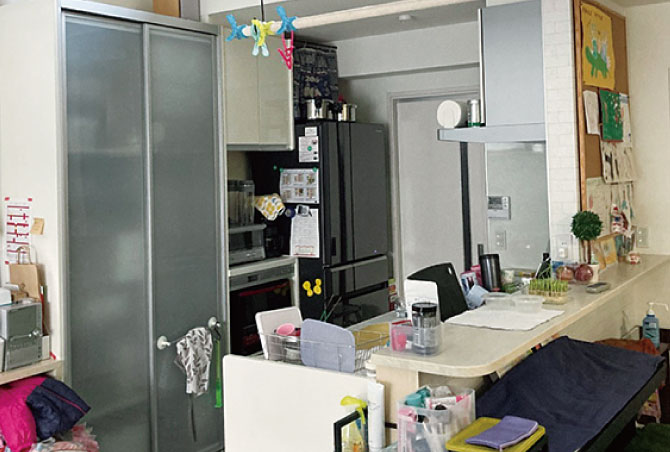 カウンター先のニッチ空間は可動棚の収納にして、実用性もバッチリ