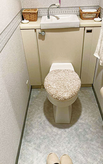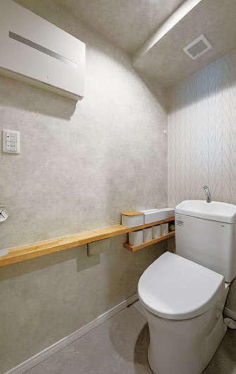 トイレは空間が広く見えるよう、暗すぎない色のクロスを選択。