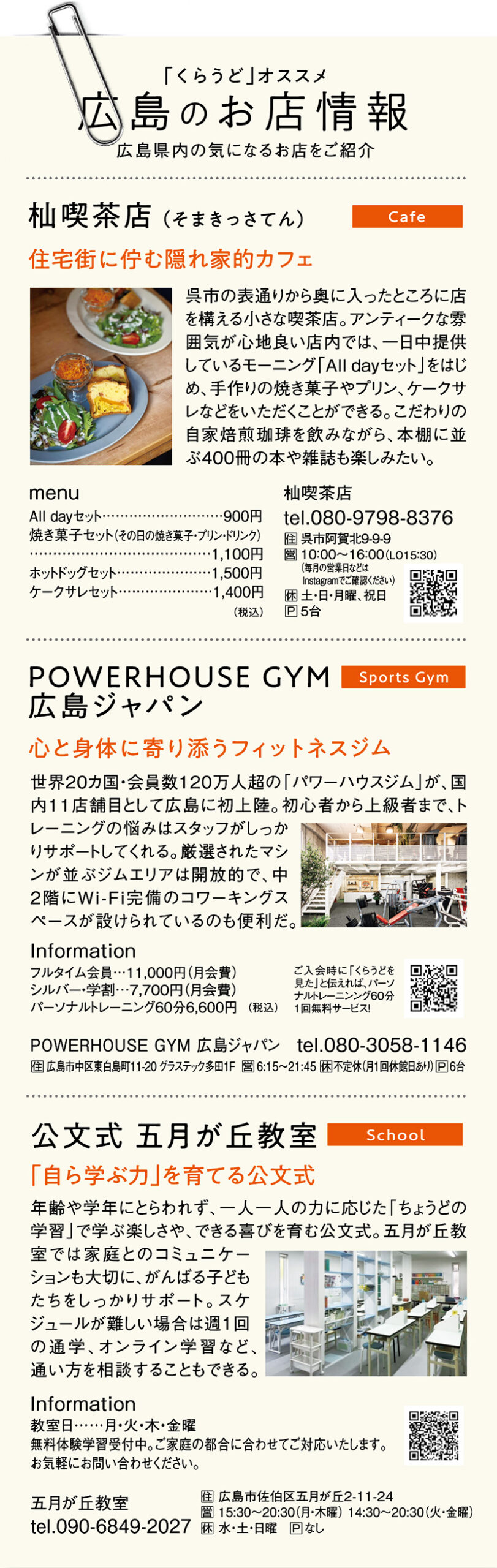 杣喫茶店 / POWERHOUSE GYM 広島ジャパン / 公文式 五月が丘教室