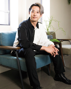 僕は、広いリビングに仲間が集まって語り合う時間が好きなんです。カーテン越しに柔らかい光が差し込むリビングで、観葉植物があって。